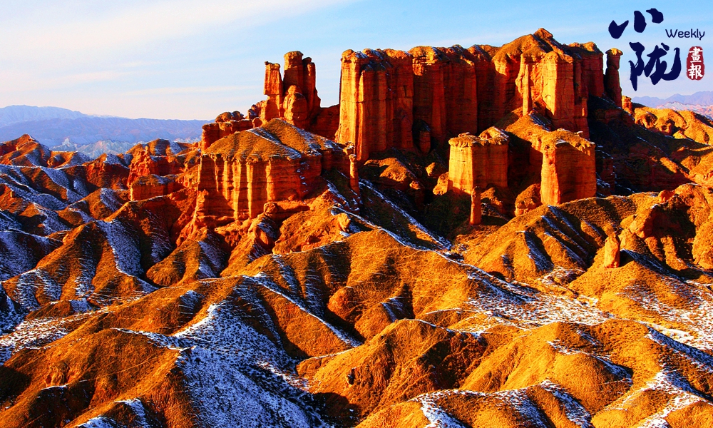 雪后的冰溝丹霞,是一軸撩人心魄的畫卷,是一座令人窒息的仙境,即便是用盡所有華麗的語言,也難描繪她的圣潔和美麗。