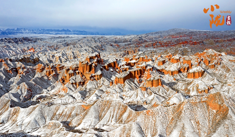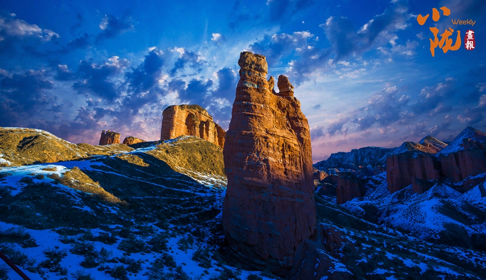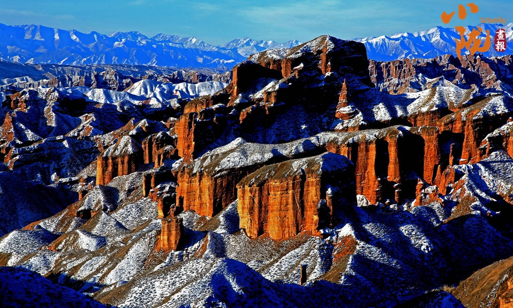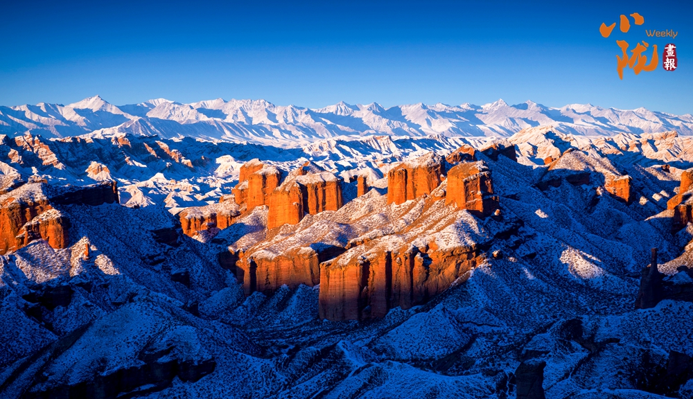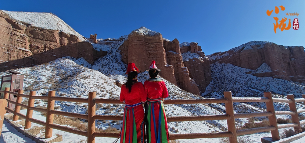 雪后初晴,紅色的山體與潔白的積雪交相輝映,丹霞奇觀在冬雪的映襯下宛如仙境,蔚為壯觀。