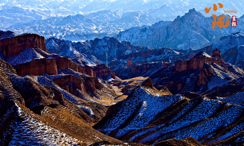 到了這里,色彩是讓人無法忘懷的記憶。大西北湛藍的晴空下,被白色覆蓋的紅色山體,變幻出多彩的顏色,氣勢磅礴。
