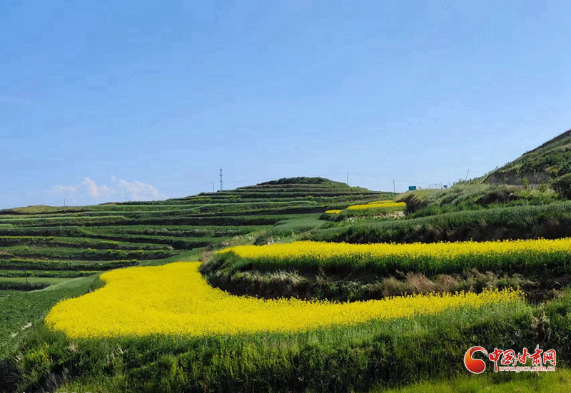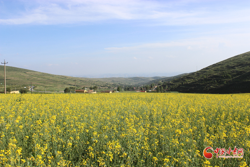 沿著普銀公路來到了被譽(yù)為“臨洮最北面的鄉(xiāng)村”的上營瓦窯灘村。這是個(gè)寧靜美麗的小山村,秋高氣爽,這里有一大片黃澄澄的油菜花地。一下車,站在普銀公路邊上,一眼望去,田間地頭,成片的油菜花與藍(lán)天白云青山交相輝映,村舍藏匿于廣闊的油菜花叢中,蜜蜂、蝴蝶在花叢中翩翩起舞,恰似一幅美麗的田園畫卷。