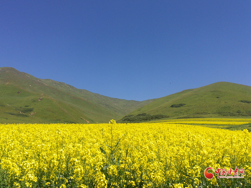 大山深處,秋風(fēng)嬉戲,藍(lán)天澄碧,大地金黃,白云悠然。蜂鳴,蝶舞,花香混合著泥土的芬芳,天地猶如一幅散著金光的風(fēng)景畫,渾然一體,如夢似幻。赤腳踩在綠油油的嫩草上,癢癢的,柔柔的,酥酥的。如母親的懷抱,舒適而安寧?;ê8呛⒆觽兊奶焯茫诶锩娲驖L,摔跤,捉迷藏……揮灑無邪的童真。這時(shí),或在花間嬉戲,或在花徑漫步,或在山野奔跑,或干脆在觸手可及的藍(lán)天白云下,枕著花香,靜靜一眠,把自己放逐在原野上,身心兩忘,回歸一個(gè)沒有謊言的世界。安靜,正如無邊無際的虛空;澄澈,又像一望無垠的凈土。清新的空氣,寂靜的原野,一切都是那么凈,靜。一切都融入自然,回歸純真。圣潔,澄凈,忘世,忘機(jī),忘我,又那么浪漫。油菜開始開花。一開始是綠葉叢中一點(diǎn)黃,就好像是綠色的海洋里揚(yáng)著黃色的一桅風(fēng)帆。接著是倆桅三桅……有一天你會(huì)發(fā)現(xiàn)綠色的海洋消失了,取而代之的是一片金黃色的閃著耀眼光芒的海平面。微風(fēng)過處,黃色的波濤此起彼伏,后浪推著前浪。有蜜蜂在花間穿梭,時(shí)而飛起,時(shí)而停在花蕊中辛勤地采著花粉,工作間隙還不忘嗡嗡地哼著歌。蝶兒翩翩飛舞在花海,兒童急急追蝴蝶。好一幅“兒童急走追黃蝶,飛入菜花無處尋”的畫面。白色蝶兒猶如黃色海面上飄著的白云,黃色蝶兒歇息在花的枝頭,你分不清是蝶兒變成了花還是花變成了蝶兒。山區(qū)的油菜花和川區(qū)的油菜花又有著迥然不同的風(fēng)采。