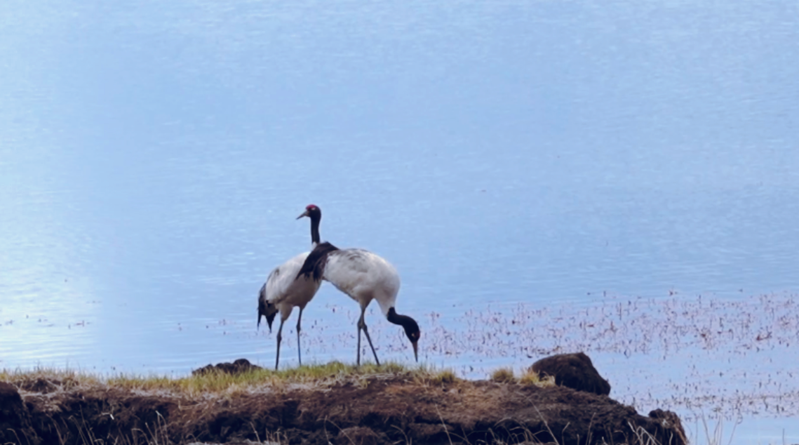進(jìn)入5月,在位于青藏高原東端的甘肅省甘南州碌曲縣尕海則岔國家級(jí)自然保護(hù)區(qū),各類候鳥也迎來了繁殖期。黑鸛、白琵鷺、黑頸鶴等珍稀鳥類,或嬉戲鳴叫,或翩躚飛舞。
