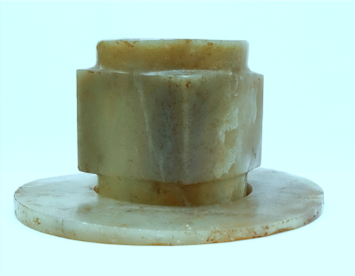 胡家底遺址發(fā)現(xiàn)的三對(duì)玉璧和玉琮,每對(duì)材質(zhì)基本相同,玉璧中孔可套疊在琮之射端,可見(jiàn)當(dāng)年有可能套疊使用以祭祀天地。