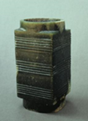 ?、偻邷霞y玉琮高14.7、邊長(zhǎng)8.2、孔徑6.95厘米。②弦紋玉琮高16.2、邊長(zhǎng)7.8、孔徑6.95厘米。③素面玉琮高16.7、邊長(zhǎng)7.2、孔經(jīng)6.4厘米。④素面玉琮 高12.8、邊長(zhǎng)8.3、孔徑7.3厘米。