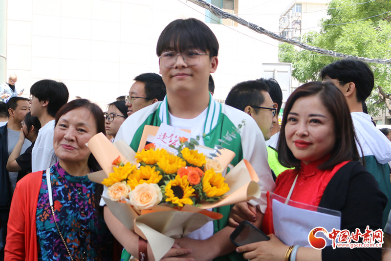 11時(shí)40分,考試結(jié)束鈴聲響起,首場語文考試順利結(jié)束,考生陸續(xù)走出考場。不少場外等待考生的家長,手里拿著花束,為考生們加油鼓勁。
