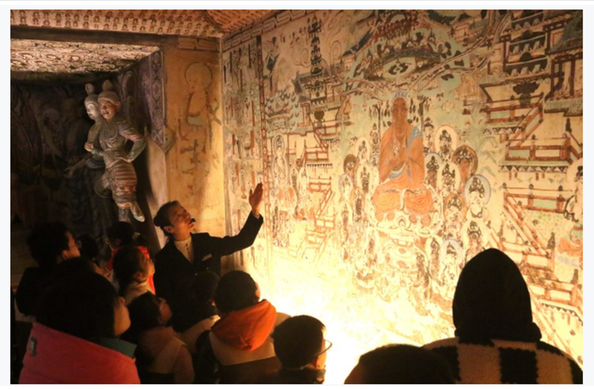 2024年,敦煌市依托當(dāng)?shù)刎S富的人文遺跡和自然景觀,大力發(fā)展文化研學(xué),建成莫高學(xué)堂、鳴沙書院等16個(gè)研學(xué)基地,推出壁畫臨摹、漢簡學(xué)堂等獨(dú)具敦煌特色的研學(xué)產(chǎn)品,讓游客和學(xué)生在參觀的同時(shí)進(jìn)一步體驗(yàn)敦煌文化的魅力。 據(jù)了解,敦煌市已推出冬春旅游優(yōu)惠政策,對大中小學(xué)生免市屬景區(qū)門票,莫高窟對研學(xué)團(tuán)隊(duì)開放洞窟由8個(gè)增至13個(gè),并配備資深講解員講解。