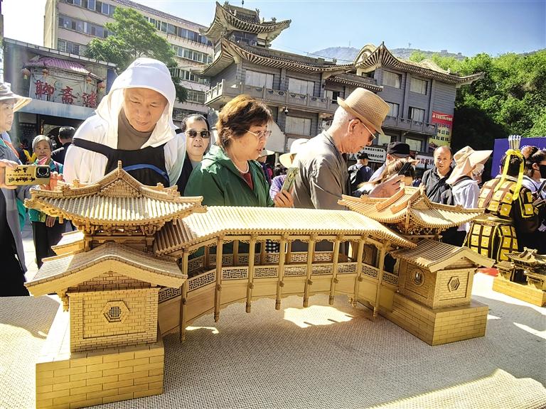 看動(dòng)態(tài)非遺,每年的“煙火蘭州迎新春”和“文化和自然遺產(chǎn)日”活動(dòng)中,聯(lián)動(dòng)各縣區(qū)開(kāi)展舞龍、舞獅、蘭州太平鼓、蘭州高高蹺、軍儺、旱船、大秧歌等社火展演,開(kāi)展蘭州刻葫蘆、蘭州剪紙、蘭州泥塑、蘭州黑陶、蘭州陶藝、古建模型等非遺技藝展示,那叫一個(gè)紅火。所到之處,人潮涌動(dòng),歡呼叫好,不絕于耳。