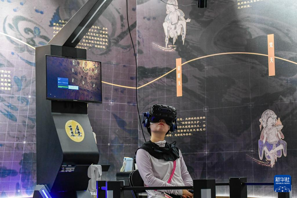 7月22日,游客借助VR設(shè)備沉浸式游覽莫高窟第285窟虛擬場(chǎng)景。新華社記者 郎兵兵 攝
