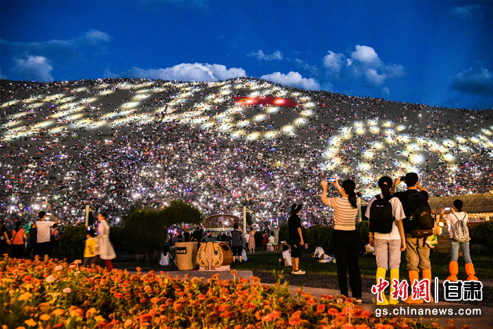 盛夏7月,每當(dāng)夜幕降臨后,甘肅省敦煌市鳴沙山月牙泉景區(qū)被精心布置的燈光點(diǎn)亮,上萬名游客手機(jī)的燈光與天空中的繁星交相輝映,營(yíng)造出一種夢(mèng)幻般的浪漫氛圍。