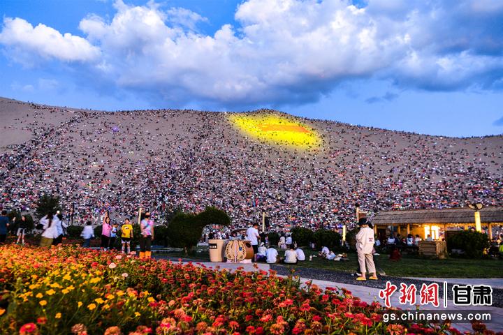 圖為敦煌鳴沙山上,上萬名游客靜待萬人星空演唱會(huì)開幕。王斌銀 攝
