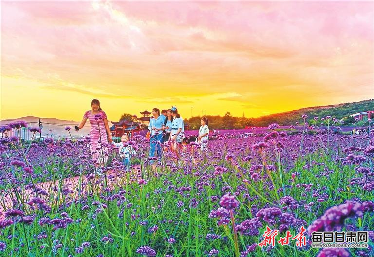 近日,清水縣花舞北山的馬鞭草進入盛花期,在晚霞的映襯下,如一幅美麗的畫卷,吸引人們前來賞花游玩。新甘肅·甘肅日報通訊員 雷金鋒