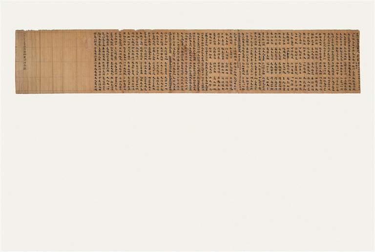《法句經(jīng)》,前涼,卷軸裝寫本,黃麻紙,出自敦煌莫高窟藏經(jīng)洞。以隸書繕抄《道行品法句經(jīng)》第三十八、《泥洹品法句經(jīng)》第三十九兩品經(jīng)文,前有裁切痕跡,題記“升平十二年(公元368年)沙彌凈明。咸安三年(公元373年)十月廿日沙彌凈明誦習(xí)法句起”,為沙彌凈明的兩次誦經(jīng)記錄。該文物是所知現(xiàn)存敦煌文獻中最早的經(jīng)卷寫本,其書法藝術(shù)展現(xiàn)了“經(jīng)書體”楷法初期的特有風(fēng)姿。