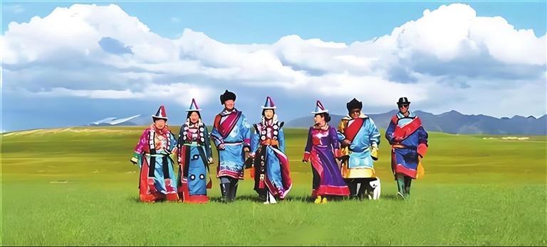 元、明時(shí)期蒙古族進(jìn)入甘肅,后來(lái)又經(jīng)過(guò)各類遷徙、文化交流與改變,為適應(yīng)寒旱牧區(qū)的生活環(huán)境和放牧騎獵的生活方式需要,蒙古族服裝多為寬大的長(zhǎng)袍、長(zhǎng)坎肩、腰帶、帽子、靴子,有男女區(qū)別、長(zhǎng)幼區(qū)別、季節(jié)區(qū)別、節(jié)日與日常的區(qū)別,最為盛大的當(dāng)屬婚慶服飾。