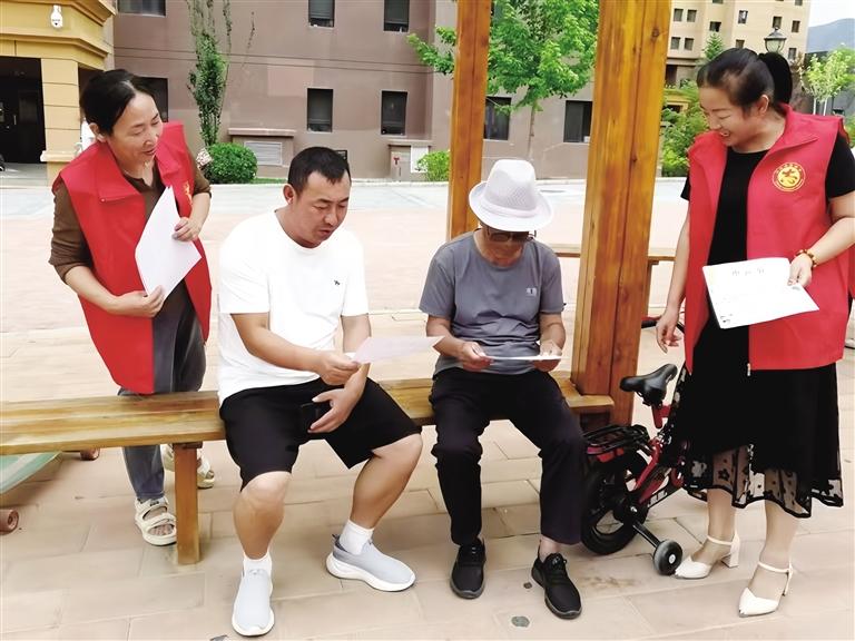 志愿者給小區(qū)居民發(fā)放《中元節(jié)文明祭祀倡議書(shū)》受訪單位供圖
