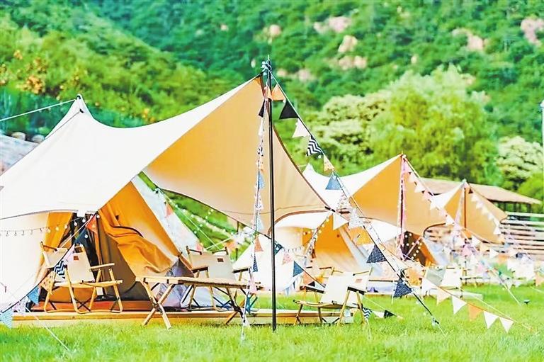 嗅著泥土和綠草的清香,享受久違的愜意。在露營基地來一場豐盛的下午茶,閑聊、玩桌游;當(dāng)夜幕降臨,來一場煙火味滿滿的草坪燒烤,各種美食鋪在桌上,露營的氛圍感被拉滿。不僅如此,周邊還有太多文旅場景可供選擇,游客可到藥王洞中醫(yī)藥養(yǎng)生堂體驗藥茶、藥膳,在杜梨峁觀景臺祈愿打卡。