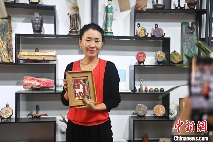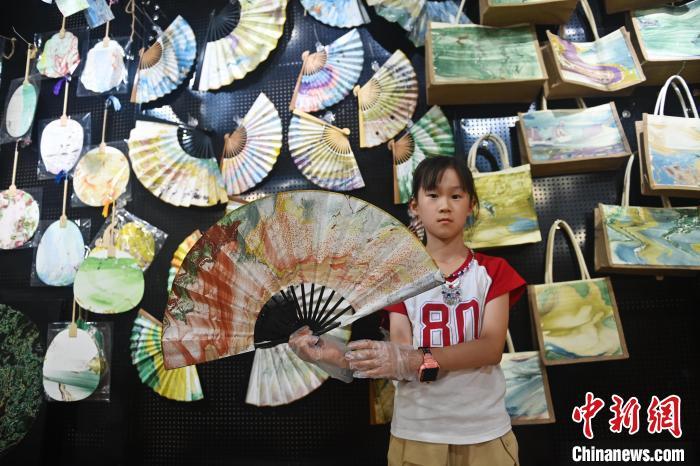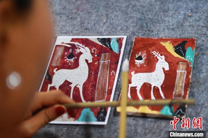 8月20日,甘肅敦煌莫高里工匠村內,學員展示研學成果。工匠村開設了泥板畫、彩繪、雕塑制作、剪紙、農耕體驗等課程,現(xiàn)已發(fā)展成為一個集敦煌文化講堂、壁畫書法研習、美術設計、彩塑制作教學、篆刻藝術、傳統(tǒng)釀酒體驗、農業(yè)產(chǎn)業(yè)發(fā)展等于一體的多功能實訓基地。中新社記者 李亞龍 攝