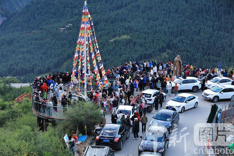 8月19日,游客在扎尕那景區(qū)仙女灘游玩。扎尕那景區(qū)位于甘肅省甘南藏族自治州迭部縣益哇鎮(zhèn),藏語意為“石匣子”,整個景區(qū)平均海拔在3000米以上,四周群山環(huán)抱,山頂云霧繚繞,森林、草原、青稞梯田與獨特的人文景觀互補(bǔ)整合,藏式民居點綴其間,吸引游客前來參觀游玩。中新社發(fā) 陳永剛 攝