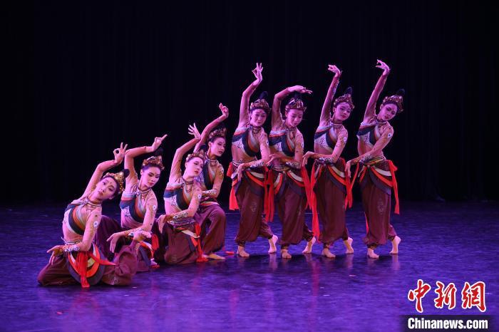 9月6日,由甘肅省人民政府臺(tái)灣事務(wù)辦公室、西北民族大學(xué)聯(lián)合舉辦的“‘尋甘同味·舞樂敦煌’第七屆臺(tái)灣大學(xué)生敦煌文化研習(xí)營(yíng)”結(jié)營(yíng)式在甘肅蘭州西北民族大學(xué)舉行。來(lái)自臺(tái)灣中國(guó)文化大學(xué)、臺(tái)灣藝術(shù)大學(xué)、臺(tái)灣體育運(yùn)動(dòng)大學(xué)與西北民族大學(xué)的65名師生在結(jié)營(yíng)式上,合作進(jìn)行了舞蹈音樂創(chuàng)作成果展演,展示了傳統(tǒng)與現(xiàn)代舞蹈的完美融合。圖為當(dāng)日進(jìn)行的舞蹈音樂創(chuàng)作成果演出。中新社記者 李亞龍 攝