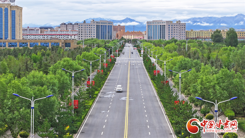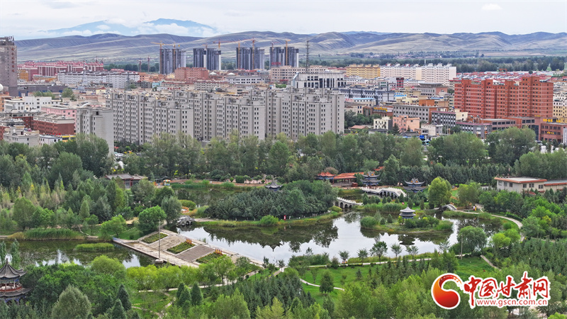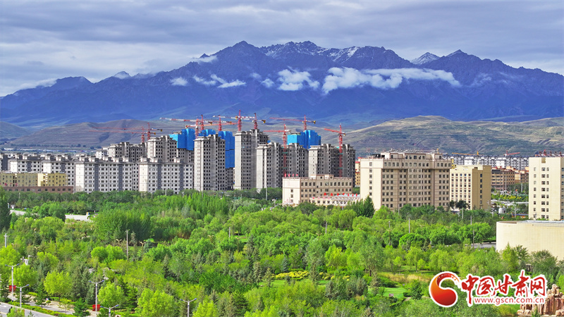 9月5日,雨過(guò)天晴的張掖民樂(lè)縣,城市清新如洗、生機(jī)盎然。云霧繚繞的山巒與高樓、民居、綠植相映成趣,繪出一幅如詩(shī)如畫的生態(tài)圖景。