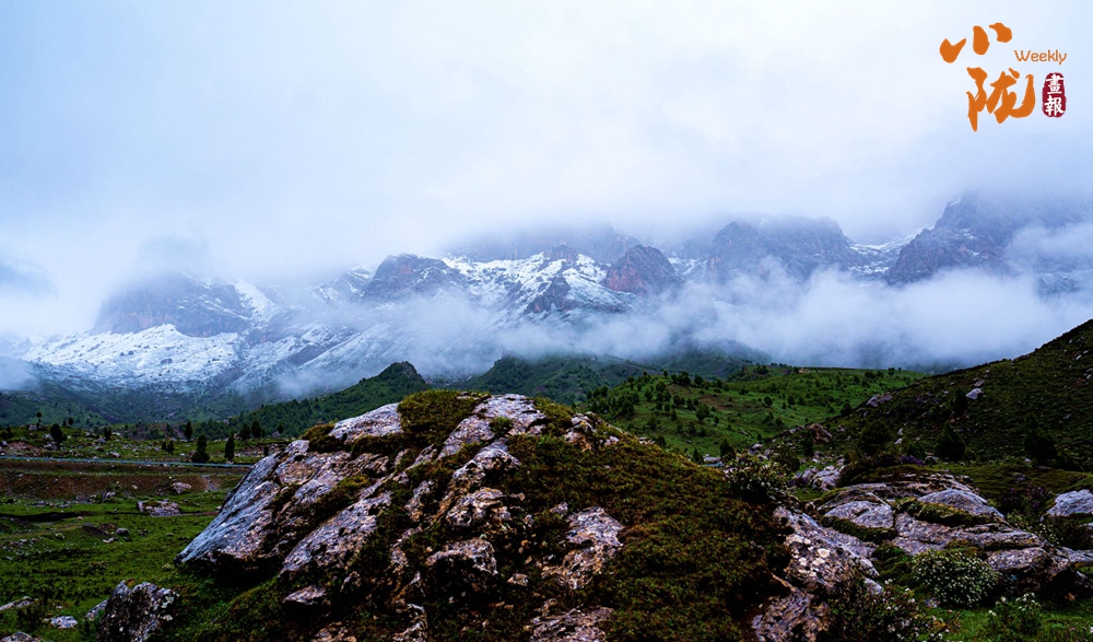 云霧輕撫山尖,仿佛一層薄紗覆蓋在綠意盎然的峰巒之上,云霧與雪山、峽谷、森林交相輝映,蔚為壯觀。