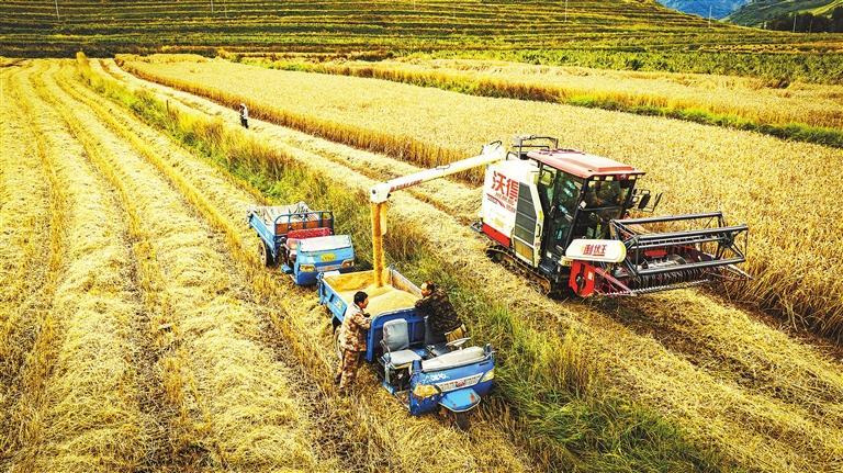 金秋時(shí)節(jié),千里隴原沃野飄香,一派豐收景象。定西市的馬鈴薯、甘谷縣的辣椒、武都區(qū)的優(yōu)質(zhì)水稻、張掖的制種玉米、酒泉和嘉峪關(guān)的制種南瓜……我省秋糧收獲漸次鋪開(kāi),一幅幅秋收?qǐng)D景撲面而來(lái),收獲的喜悅洋溢在農(nóng)戶的臉上。