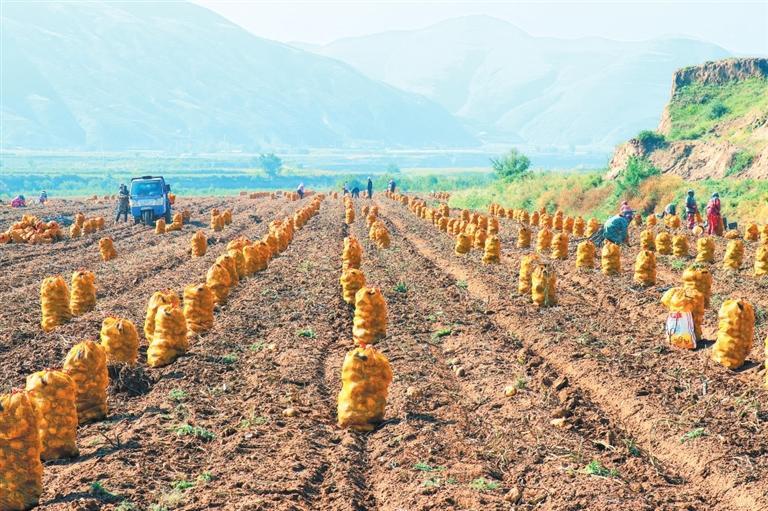定西市安定區(qū)魯家溝鎮(zhèn)村民在分揀、裝運(yùn)收獲的馬鈴薯。新甘肅·甘肅日?qǐng)?bào)通訊員 胡耀偉