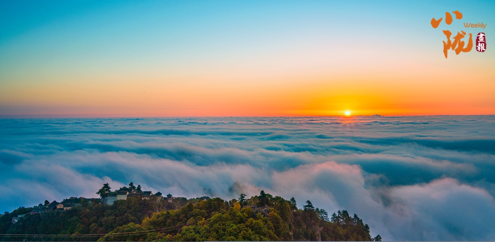 云霧繚繞,金黃的葉子似金色海洋,覆蓋山脈,在陽光照耀下散發(fā)著溫暖光芒,仿佛為崆峒山披上了璀璨外衣。
