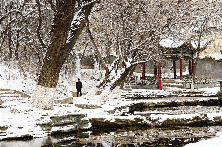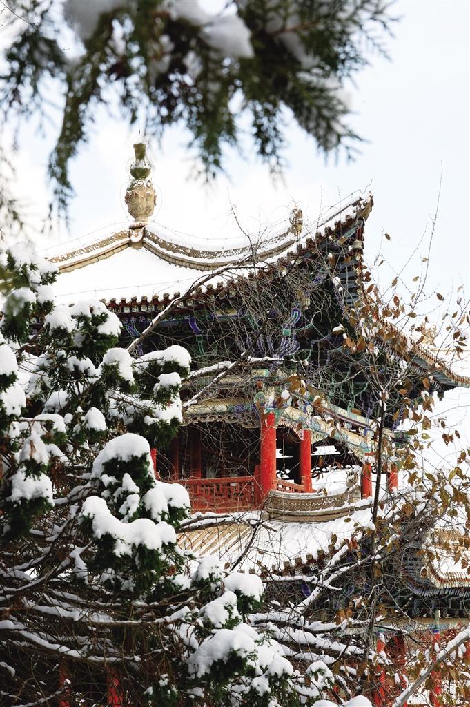 11月25日,雪后的蘭州五泉山公園銀裝素裹,迷人雪景如畫(huà)。古老亭臺(tái)樓閣紅墻玉頂、參天古樹(shù)玉樹(shù)瓊枝,宛如大地書(shū)寫(xiě)的一幅“水墨丹青”,美不勝收,游客紛至沓來(lái),賞雪、拍照,盡情享受清爽的空氣和潔白的美景。 奔流新聞·蘭州晨報(bào)記者 裴強(qiáng) 攝
