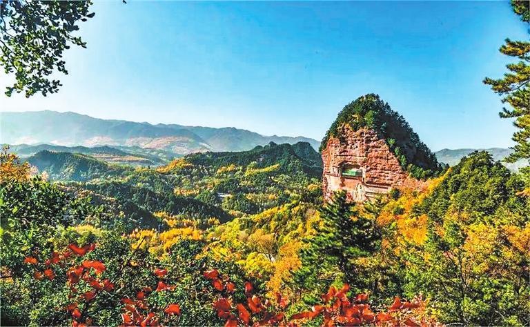 麥積山石窟 麥積山石窟地處天水市麥積區(qū)東南30公里的小隴山中,因該山形似農(nóng)家麥垛而得名。麥積山石窟與敦煌、龍門、云岡并稱為中國四大石窟。麥積山石窟保存的造像以泥塑為主,歷代連續(xù)不斷,全面展示了古代泥塑發(fā)展演變的過程,是研究雕塑史、美術(shù)史的重要資料,有“東方雕塑陳列館”的美譽。