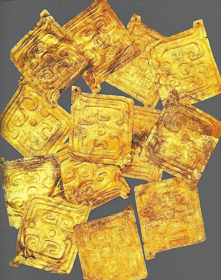 1994年春,陜西省考古研究所所長(zhǎng)韓偉在法國(guó)、比利時(shí)訪(fǎng)問(wèn)期間,見(jiàn)到了一批從香港過(guò)來(lái)的金飾片和一對(duì)金虎。韓偉先生對(duì)這組金飾片從器形、紋飾進(jìn)行了分析,并參考蘇黎世研究員莫爾夫人從金虎內(nèi)提取的木制標(biāo)本碳-14檢測(cè)結(jié)果,認(rèn)為這批金飾片為西周晚期秦人首領(lǐng)秦仲或秦莊公墓棺上的裝飾物。