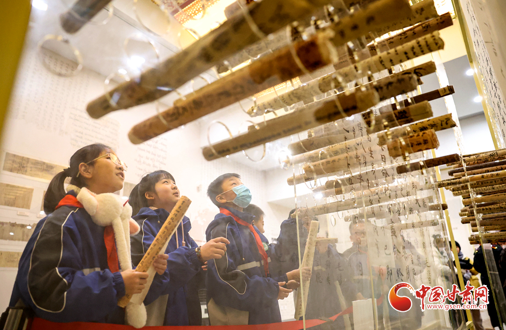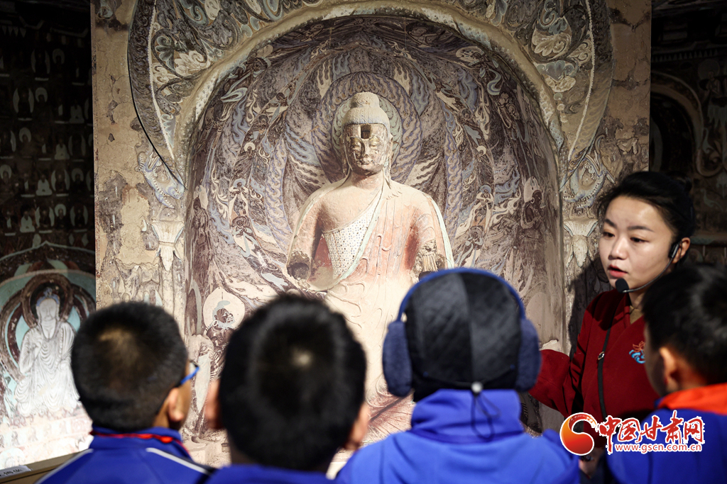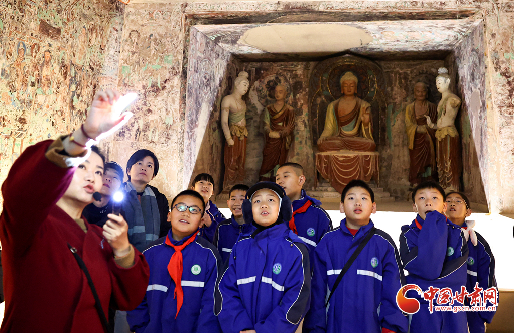 12月29日,蘭州市城關(guān)區(qū)安樂村小學(xué)學(xué)生在家人的陪同下來到敦煌研究院蘭州分院敦煌藝術(shù)館,欣賞“覺色敦煌 莫高精神”敦煌石窟藝術(shù)展,在周末時(shí)光近距離感受敦煌文化藝術(shù)的魅力。