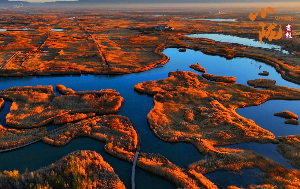 在那廣袤的濕地里,金黃的蘆葦叢延綿不絕,迎風(fēng)搖曳,在冬天綻放出別樣的絢爛。