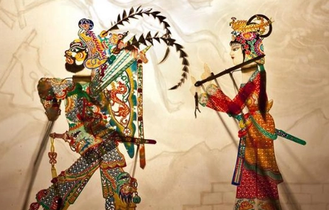 皮影戲,即由皮影藝人在幕影后掌握操縱用獸皮或紙版雕刻的半透光材料制作的人、物等彩色形象,使其做出種種動作,再借燈光將動作者的剪影(影偶形象)打上幕影,并配合一定言語、說唱和背景音樂,從而表演戲劇故事的一種藝術(shù)形式。