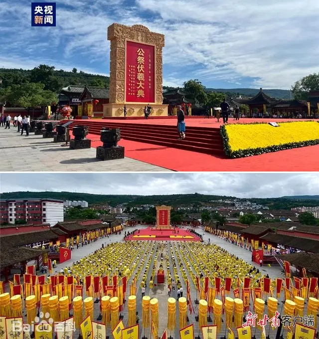 甘肅天水是伏羲的誕生地,自古以來就有祭祀伏羲的傳統(tǒng)。自1988年以來,每年6月夏至日舉辦的天水公祭伏羲大典,已成為海內(nèi)外同胞尋根祭祖的重要平臺。2006年,“太昊伏羲祭典”被列入首批國家級非物質(zhì)文化遺產(chǎn)名錄。2014年起,天水每年與臺灣地區(qū)同日同時舉行海峽兩岸共祭伏羲典禮。