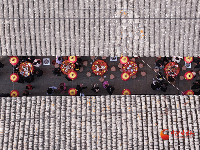 白馬民俗長街宴,美食沿著古巷分布,桌椅板凳綿延幾百米,家家戶戶帶來特色美食,一起與游客分享,帶來團(tuán)圓的問候和特有的民俗體驗,臘肉、臘排都是農(nóng)家食材,十大碗更是當(dāng)?shù)孛朗程厣?/p>