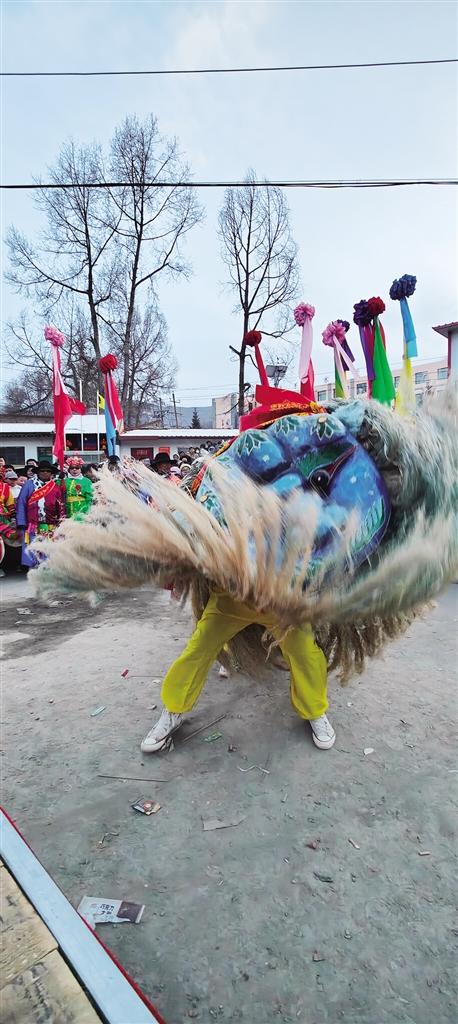 春節(jié)期間,人們擇吉日起社火,青毛獅子會(huì)在春官的贊詞里,在喧天的鼓號(hào)角里,在祈佑新愿的鄉(xiāng)民里威風(fēng)凜凜地走莊串社。