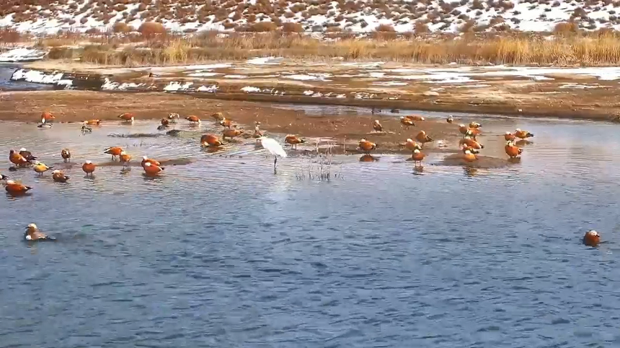 近日,甘肅秦王川國家濕地公園迎來候鳥遷徙高峰,國家二級保護動物斑頭秋沙鴨、白骨頂,成群結(jié)隊的赤麻鴨、綠頭鴨以及優(yōu)雅的白鷺構(gòu)成“萬羽翔集”的生態(tài)畫卷,印證濕地生態(tài)系統(tǒng)的顯著改善。