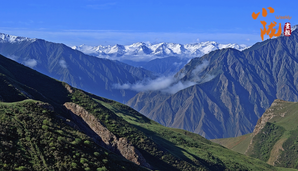 祁連雪峰周圍群峰羅列、層巒疊嶂,高低延綿的群山被此起彼伏的林海包圍,像一道道五彩的波浪,郁郁蔥蔥,生機盎然。站在祁連山巔俯瞰,冰川積雪與綠洲農(nóng)田、森林構(gòu)成震撼人心的生態(tài)畫卷。