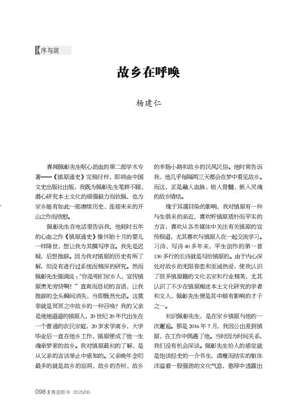 喜聞佩彰先生嘔心瀝血的第二部學術專著——《鎮(zhèn)原通史》完稿付梓,即將由中國文史出版社出版,我既為佩彰先生筆耕不輟、潛心研究本土文化的頑強毅力而欽佩,也為家鄉(xiāng)能有如此一部賡續(xù)歷史、連接未來的開山之作而欣慰。