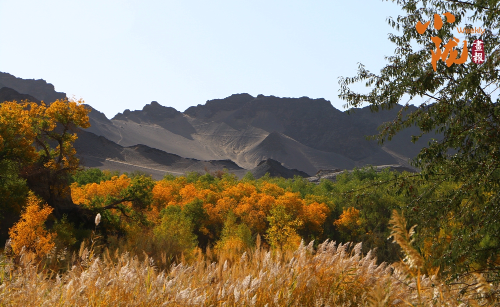 這里山勢奇特,因溝深線長,猶如峽谷,溝邊自生許多胡楊,被稱為“胡楊峽”。你看,溝邊沙山林立,千年胡楊挺拔,溝內(nèi)溪水清澈纏綿,天然的紅柳、蘆葦、梭梭、沙棗樹等植被錯落有致,共同繪就了一幅秋日畫卷。