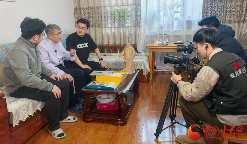 兩度擔任鐵人秘書的孫寶范(左二)與孫子、外孫接受鳳凰網甘肅頻道采訪?!£悤员?攝