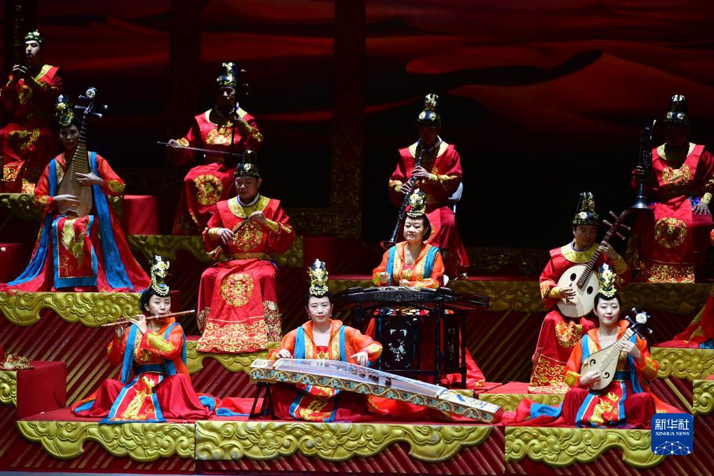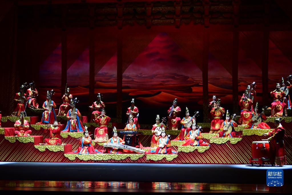 演員在敦煌大劇院表演大型民族器樂劇《玄奘西行》(9月23日攝)。新華社記者 陳斌 攝