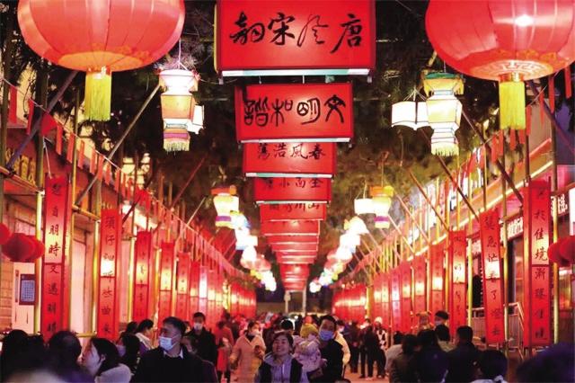 其中,甘南州夏河縣以民間舞與民歌聯(lián)歡的方式迎接春節(jié)的到來,“南木特”藏戲公益性展演活動也同步拉開序幕;武都高山戲民間演出活動在隴南市武都區(qū)魚龍鎮(zhèn)精彩上演;張掖市民樂縣秦腔展演讓城北民俗文化村的游客們大飽耳福;白銀市先后舉辦了景泰樹皮筆畫作品展、“美在民間”白銀剪紙傳承人作品邀請展;正月十三,定西市安定區(qū)內(nèi)官營鎮(zhèn)一年一度的“凈街”民俗活動成功舉行,現(xiàn)場熱鬧非凡;金昌市永昌縣“保護非遺·傳承民俗·慶祝元宵”為主題的“卍”字燈城民俗文化活動于元宵佳節(jié)閃亮登場;在蘭州老街穿漢服、賞花燈、游園會,沉浸式體驗傳統(tǒng)文化成為新民俗。