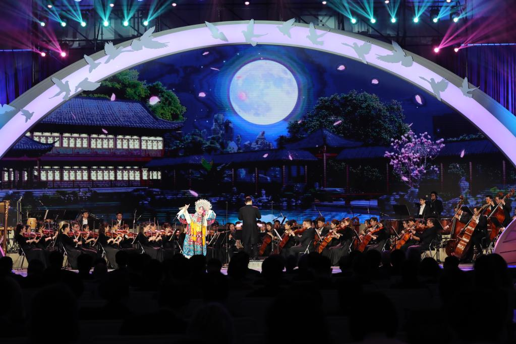 “好一朵美麗的茉莉花!”音樂會進(jìn)入高潮,享譽(yù)海內(nèi)外的中國民歌《茉莉花》在“世界會客廳”響起,常住上海的美國男孩塞繆爾和中國女孩費(fèi)妙涵攜手領(lǐng)唱。來自中國福利會少年宮小伙伴藝術(shù)團(tuán)和上海小熒星藝術(shù)團(tuán)的孩子們載歌載舞,上海美國商會和上海美國學(xué)校的代表等也走上舞臺,一同唱響這首膾炙人口的中文歌曲。