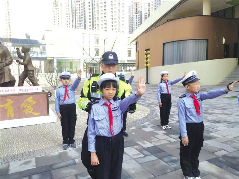 原標(biāo)題:交警課間進(jìn)校園 教孩子們交通手勢操