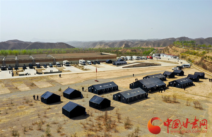 16頂依山臨時搭建的警用帳篷就是一個個指揮部,甘肅省公安廳在甘肅警察職業(yè)學(xué)院舉辦的廳機(jī)關(guān)實戰(zhàn)大練兵應(yīng)急處突拉動演練中,作為指揮機(jī)關(guān)的廳屬單位29名處(局)長和14名市、州公安局局長正在接受近乎嚴(yán)苛的考驗。