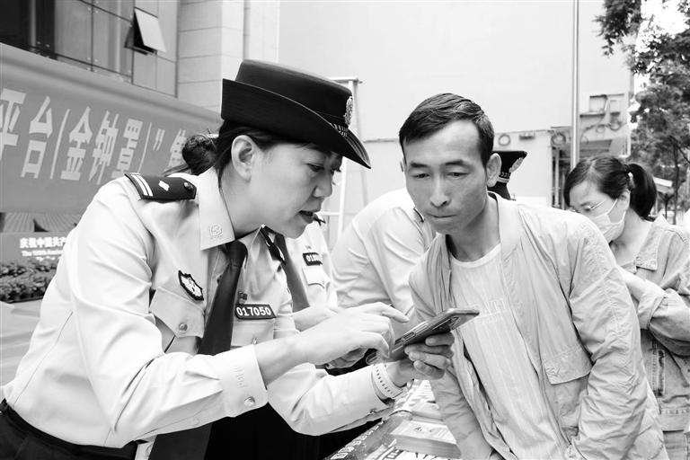 民警指導(dǎo)群眾安裝注冊國家反詐中心APP(蘭州市公安局城關(guān)分局供圖)