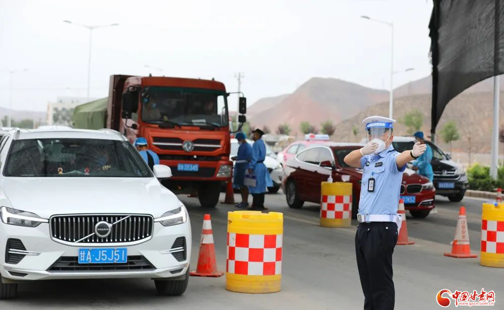 韓家河治安檢查站,執(zhí)勤民輔警協(xié)同配合責任成員單位工作人員嚴守蘭州南大門,做好跨地區(qū)出行人員勸導,全力筑牢“外防輸入 內(nèi)防輸出”安全屏障。楊 釗/攝