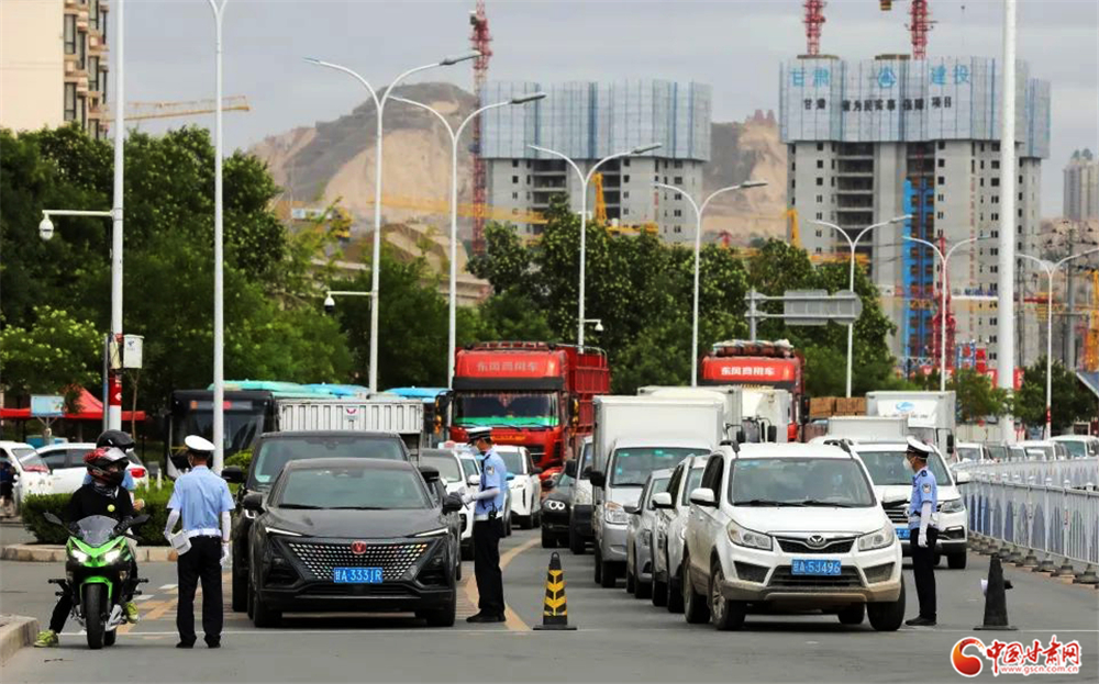 蘭州公安交警嚴格按照疫主城四區(qū)情防控措施要求,對非必要入城車輛進行查驗勸返。楊 釗/攝