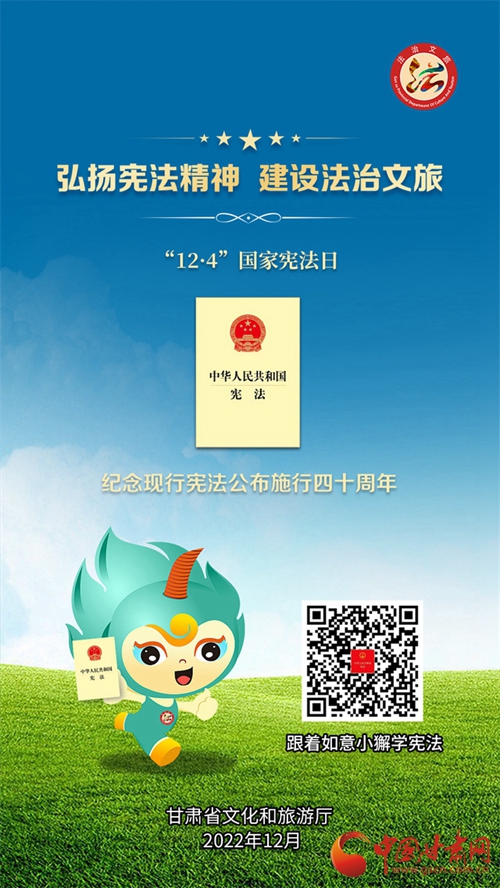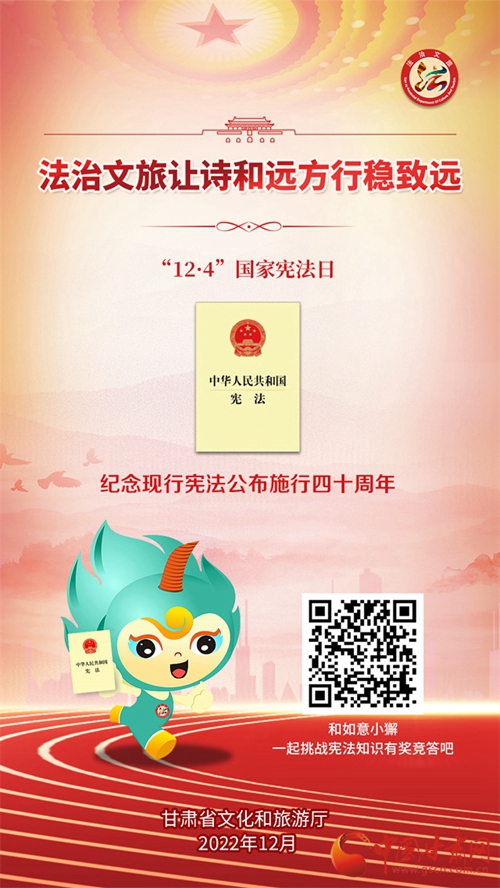 中國(guó)甘肅網(wǎng)12月7日訊 (本網(wǎng)記者 張?zhí)m琴)自12月4日國(guó)家憲法日暨憲法宣傳周啟動(dòng)以來,我省各地開展了形式多樣的宣傳活動(dòng),為深入學(xué)習(xí)宣傳貫徹黨的二十大精神,不斷增強(qiáng)人民群眾法治意識(shí),形成全民維護(hù)憲法的濃厚氛圍,同時(shí)加強(qiáng)文化和旅游的法治宣傳教育,省文旅廳近日開展了國(guó)家憲法日暨憲法宣傳周系列活動(dòng)。